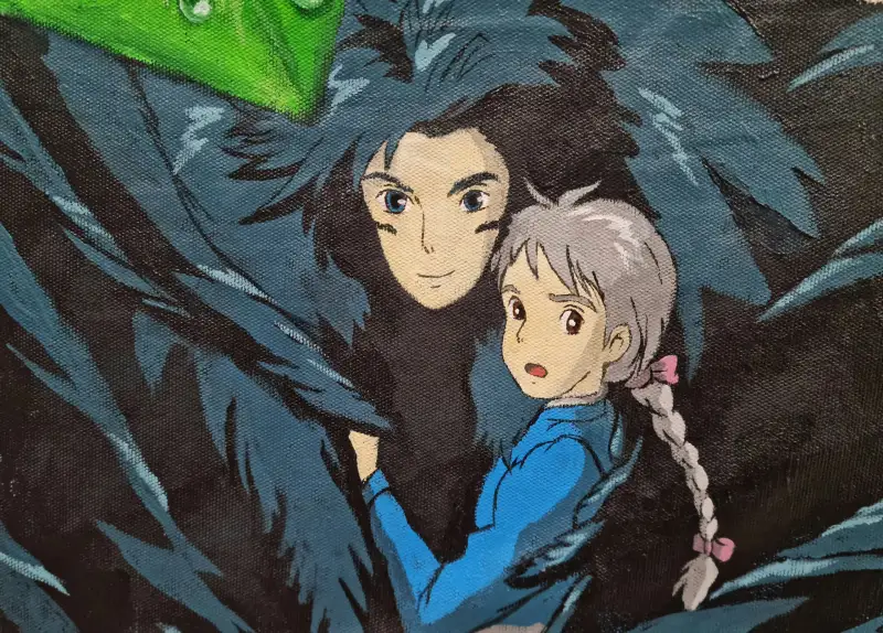 이 장면 제가 하울의 움지이는 성에서 가장 그리고싶은 장면중 하나였습니다! 하울의 진짜모습이 드러나지고 이런 하울를 무서워하지않고 소피가 다가가 위로해주고 서로를 응원하는 장면입니다! 제가 인상깊게 본 장면 중 하나입니다
