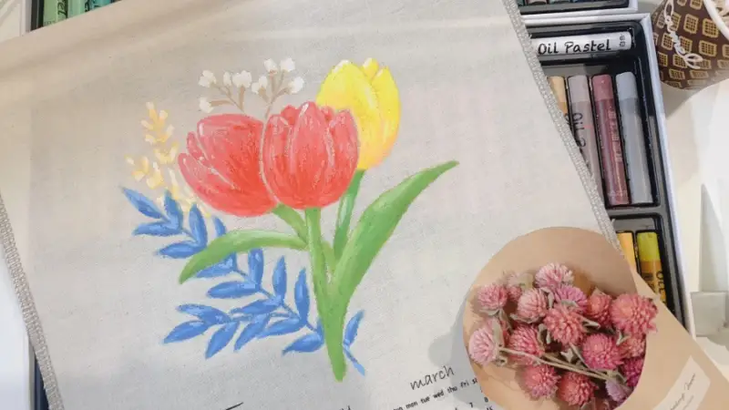 천에도 부드럽게 잘 그려졌고 색도 잘 얹어졌어요.
