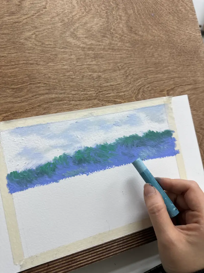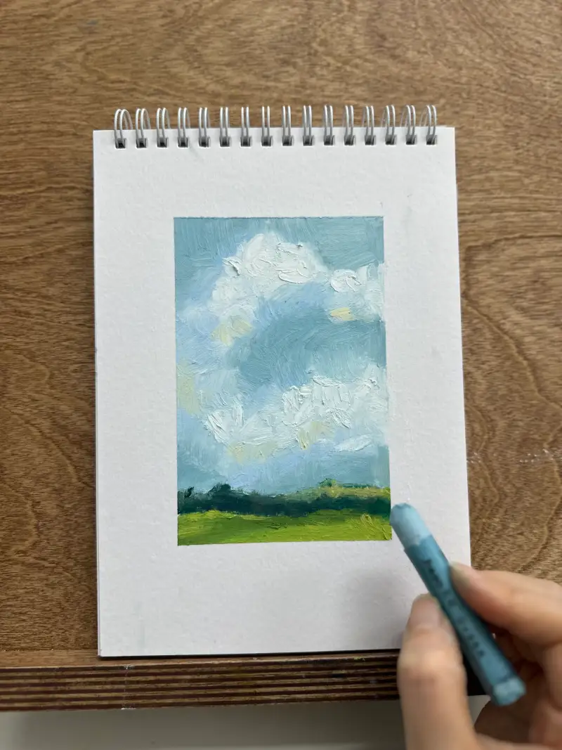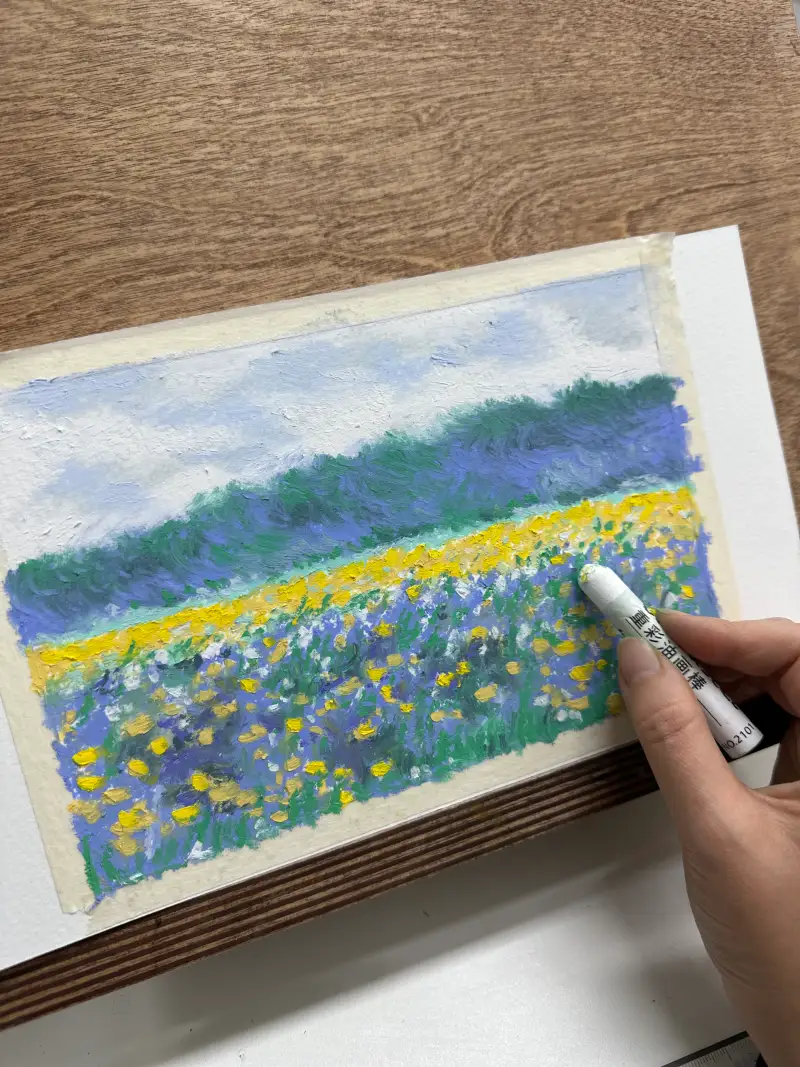 특별하게 힘을 주지 않아도 유화처럼 꾸덕한 질감 표현이 가능합니다. 제가 가지고 있는 시넬리에 오일파스텔도 무른 느낌이 특징인데 그보다 더 무르기때문에 신기했어요.