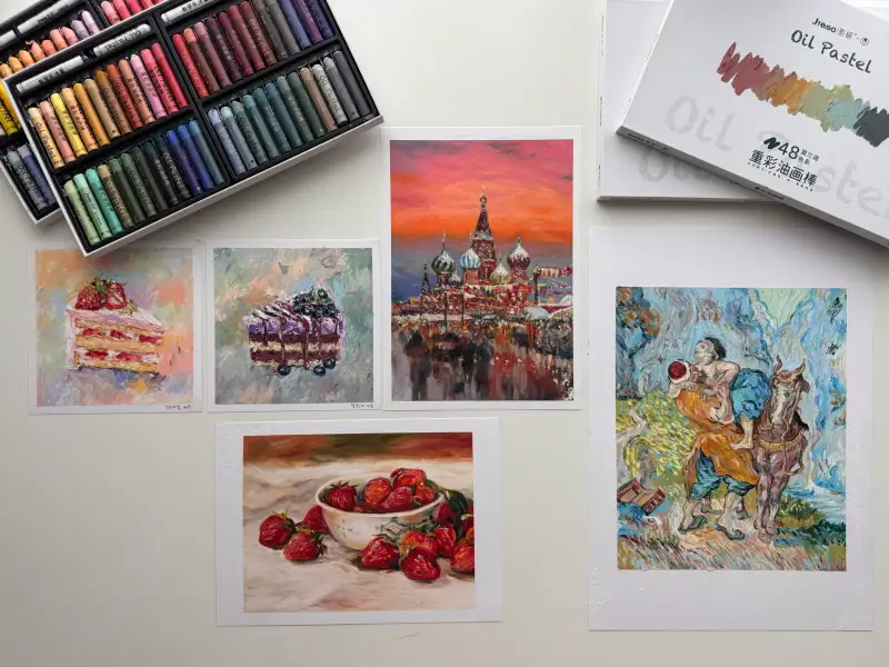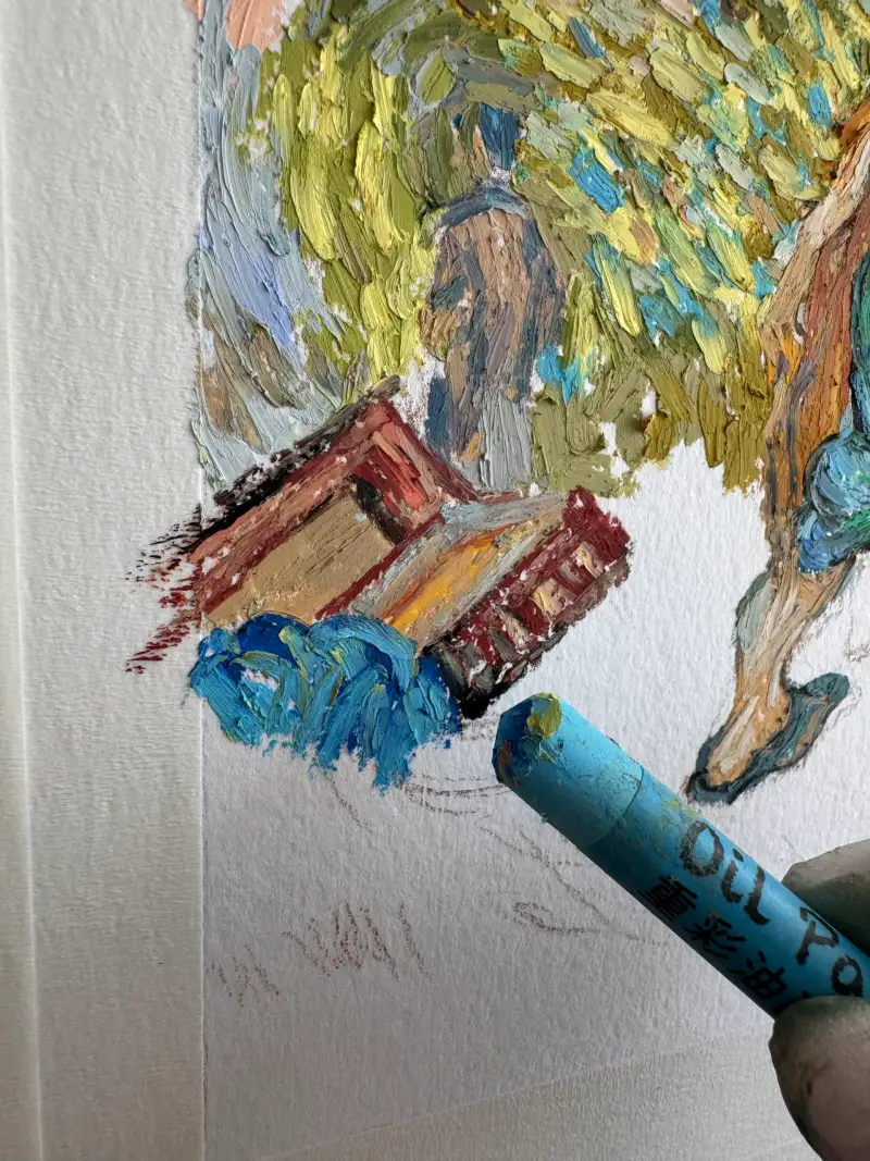 오일파스텔을 두껍게 올려도 반나절정도 지나면 살짝 말라있어서 계속 묻어나는 걱정 안해도되는 장점도 있어요 ☺️