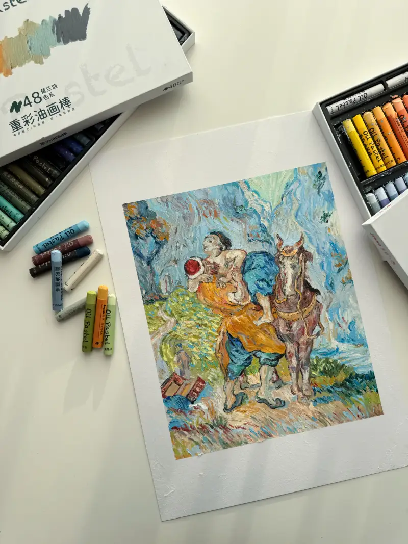 고흐 모작하기위해 만들어졌나 싶을정도로, 지에소 오일파스텔 특징이 임파스토기법에 너무 잘 어울렸어요.