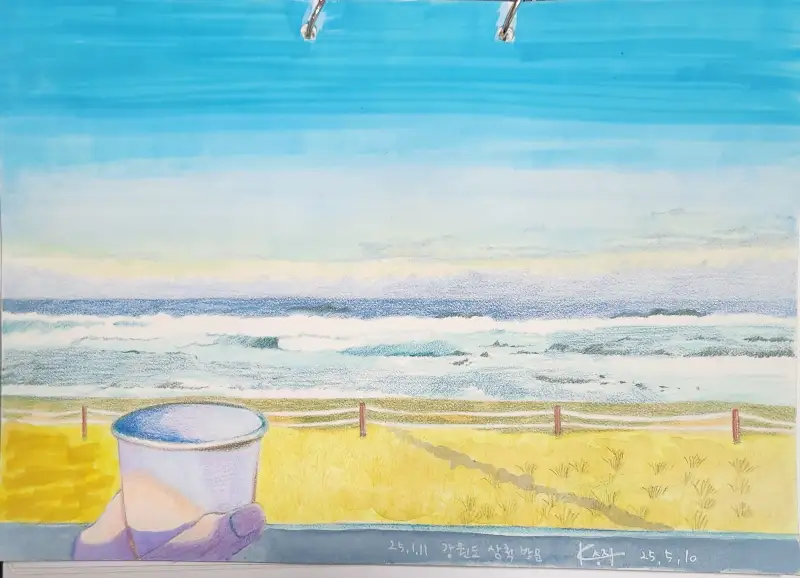 하늘은 마카로 칠하다가 별로인 것 같아서 수채물감으로 덮었습니다.