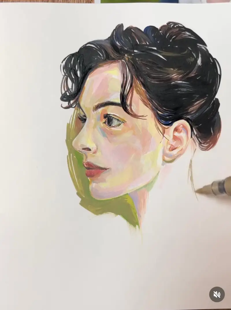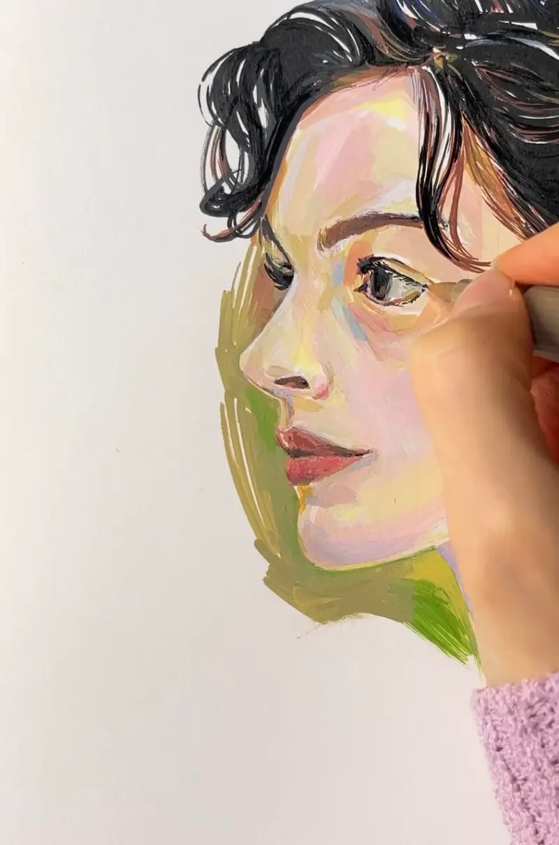 아크릴마카로만 사용해서 그려본 인물화는 또 처음이라..,, 초 긴장하며 그렸다능 이야기😵💫🥶