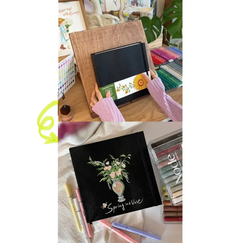그리고 마카 패드 커버가 올블랙의 무지 하드커버라.. 무언가 포인트 될 만한 그림을 그려보고 싶어서 봄 맞이겸 꽃그림을 그려넣어봤는데요!