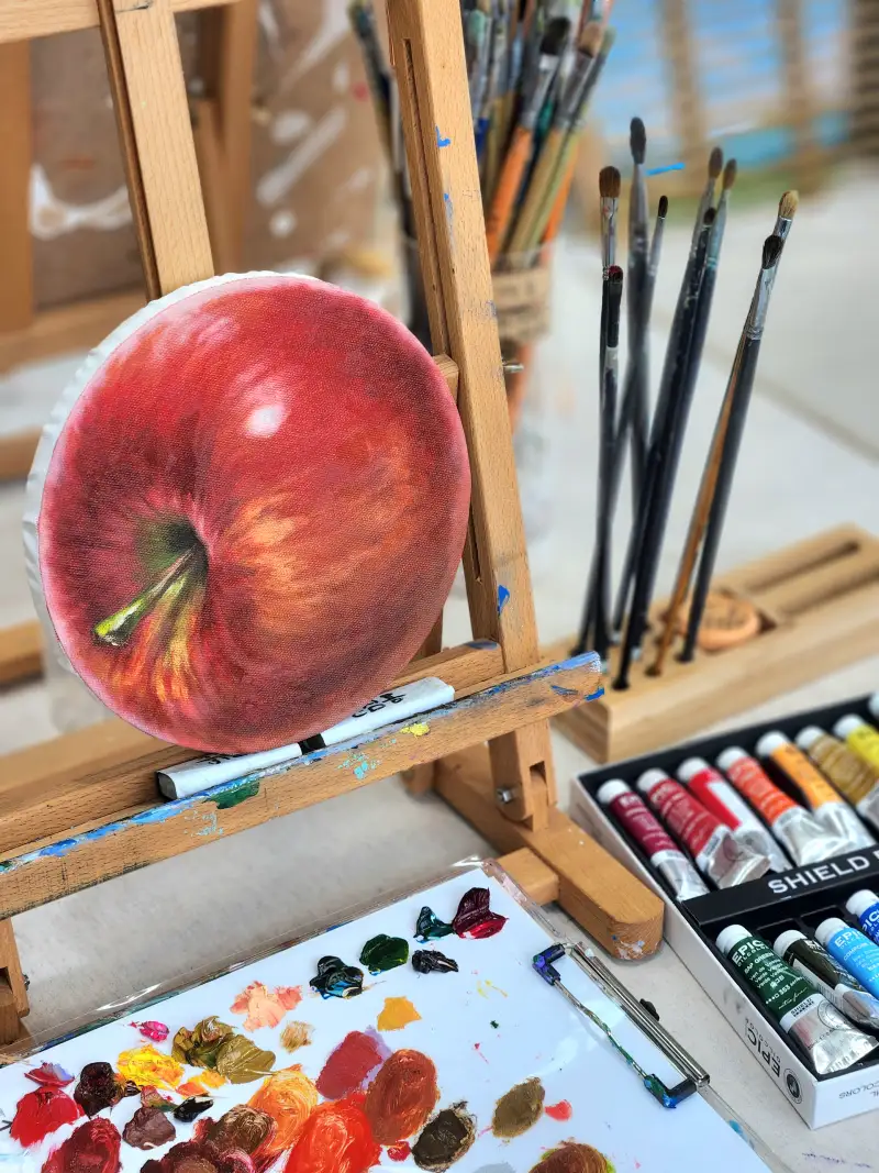 쉴드의 전문가용 유화 물감과 캔버스를 사용해 탐스러운 사과를 그려봤어요.