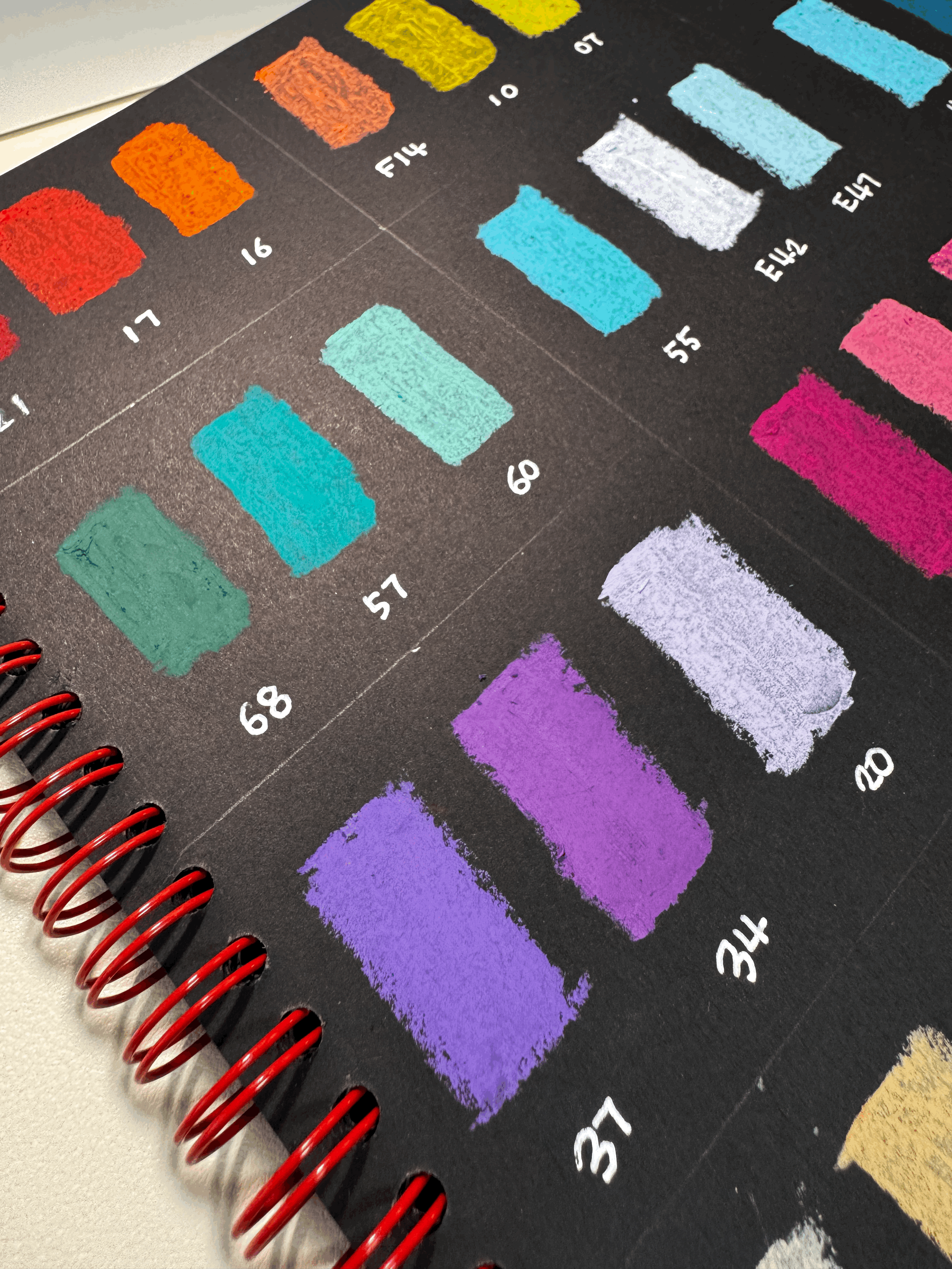 완료된 색상표를 보시면 안료의 차이에 따라 조금 더 꾸덕하고 두껍게 발리는 색이 있는가하면 조금 얇아보이는 색도 있긴해요. 비교적 대부분의 색이 꾸덕하고 두껍답니다.