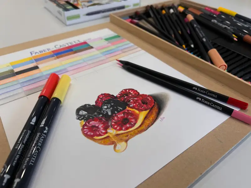 마지막에 오일파스텔로 하이라이트와 베리의 선명한 색감을 강조해 마무리했어요