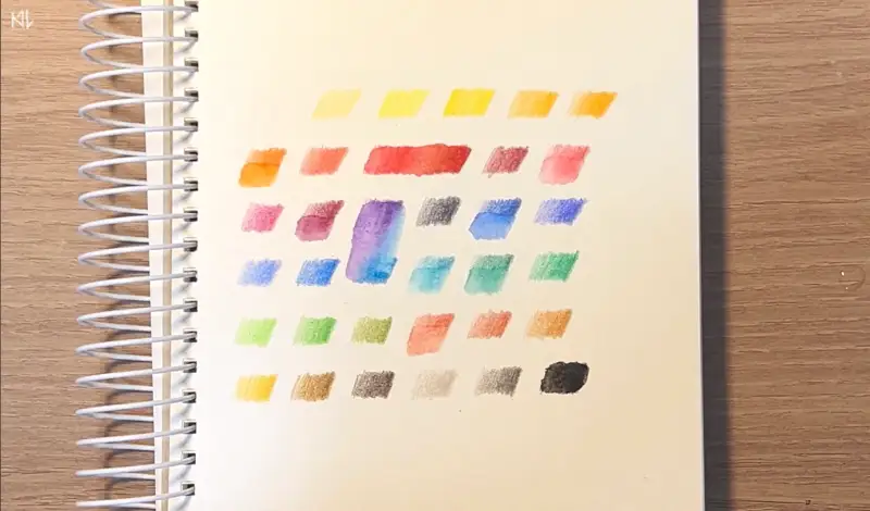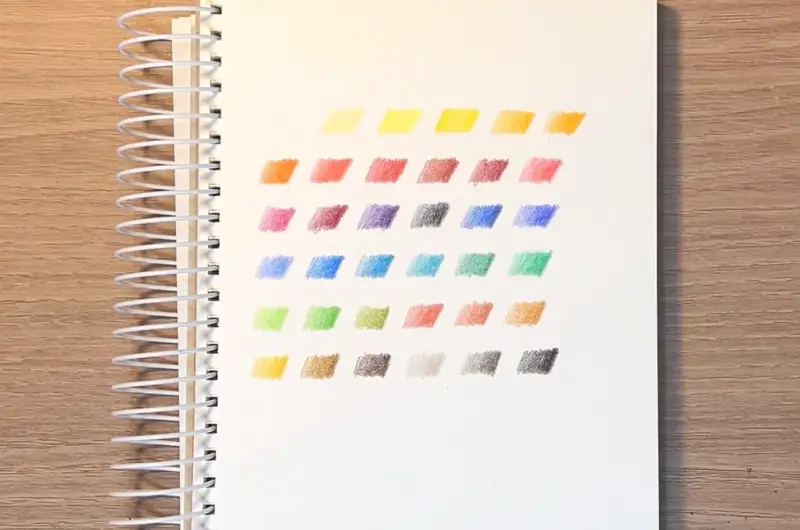 작업 전, 발색표를 만들어 봤어요. 수채 색연필이라 단독 발색은 약할 줄 알았는데 일반 색연필과 다를 거 없이 선명하게 나타납니다! 기존에 가지고 있던 파버카스텔 유성 색연필과 비교해 보면, 수채 색연필이 조금 더 굵은 입자로 거칠게 칠해지는 느낌이에요.