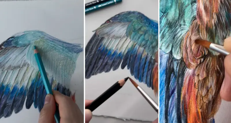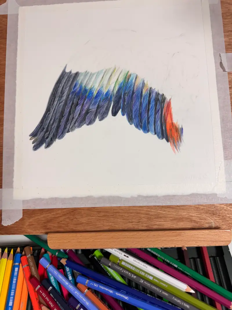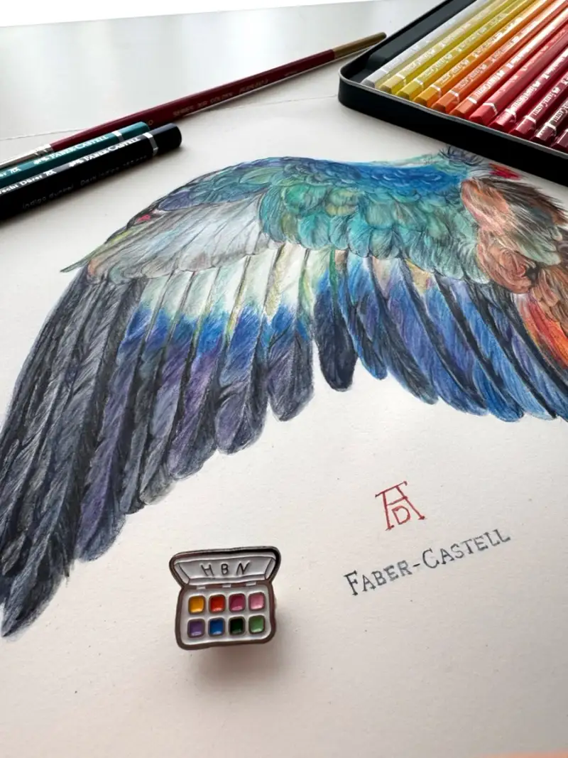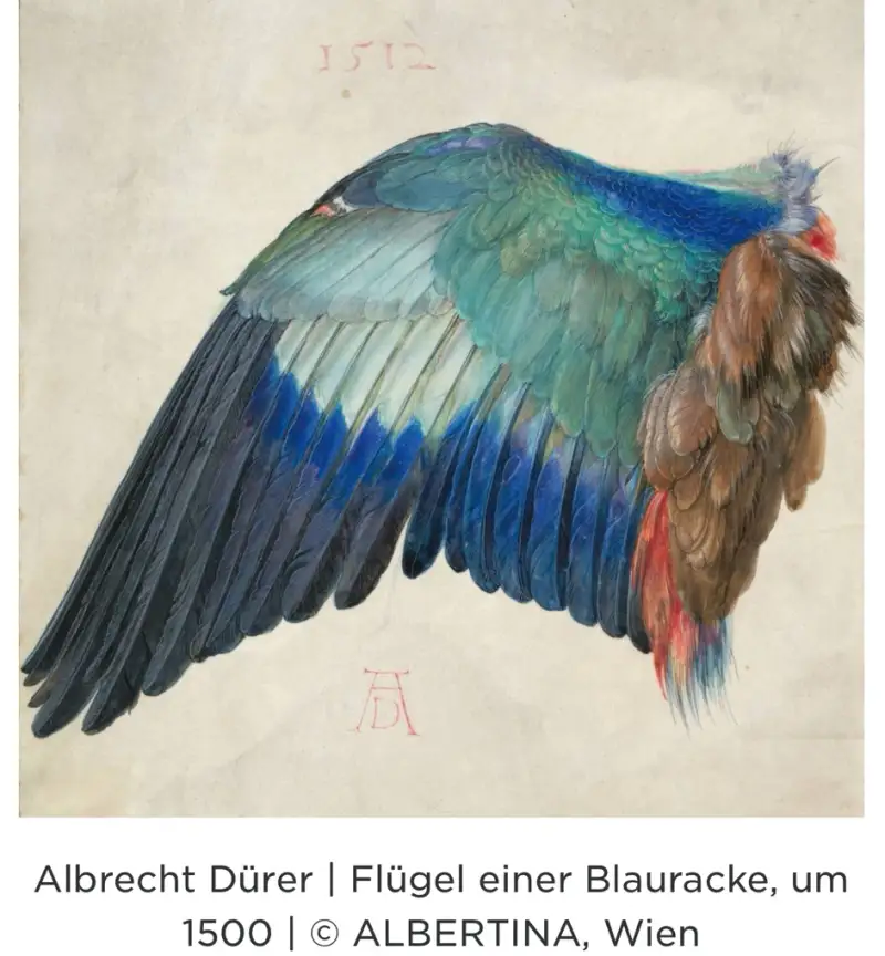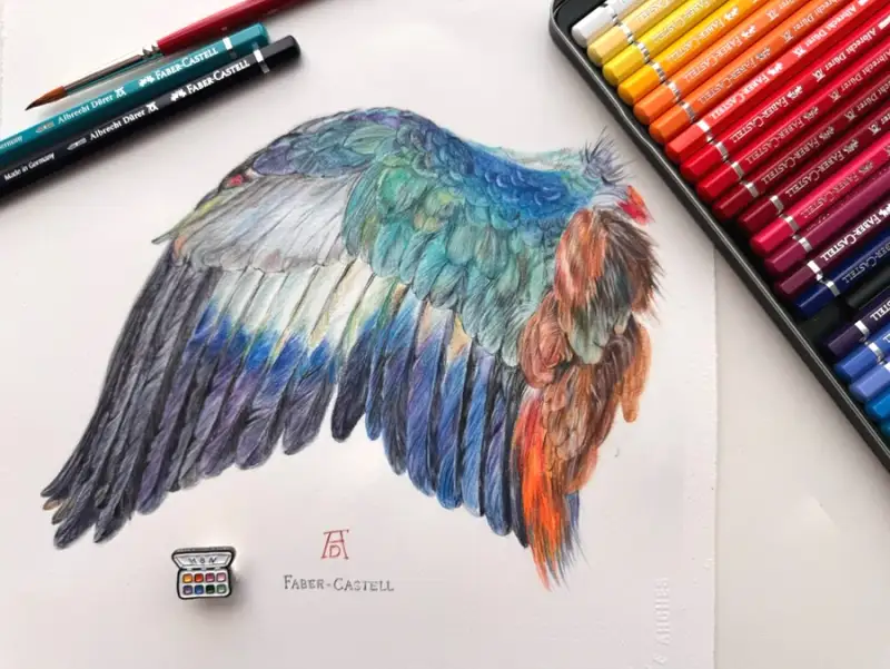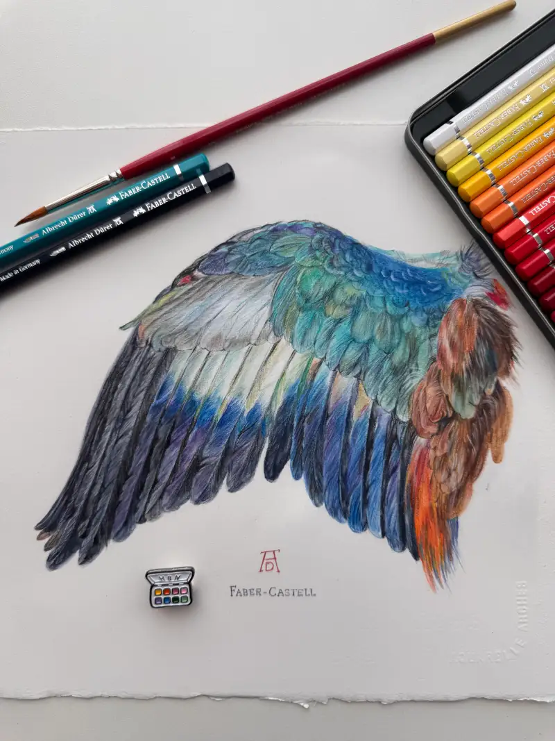 제가 가장 좋아하는 뒤러의 Wing of a Blue Roller를 수채색연필로 그려보았어요😊