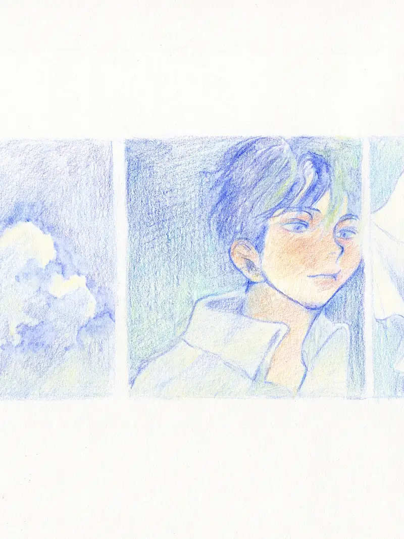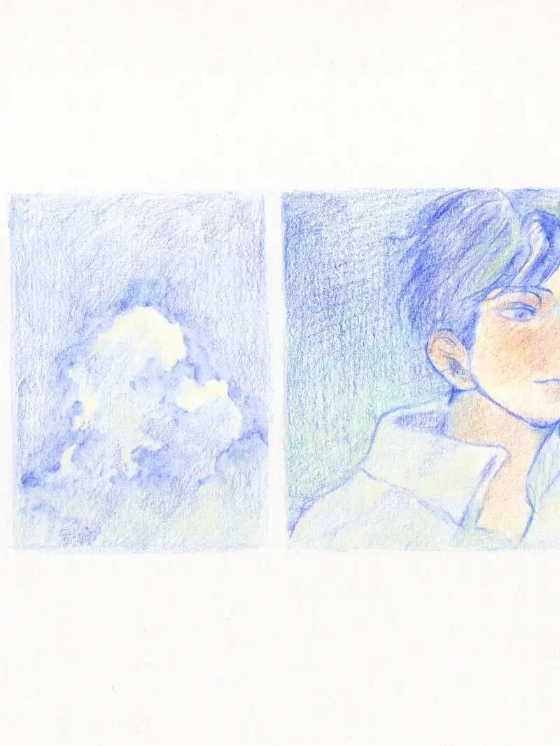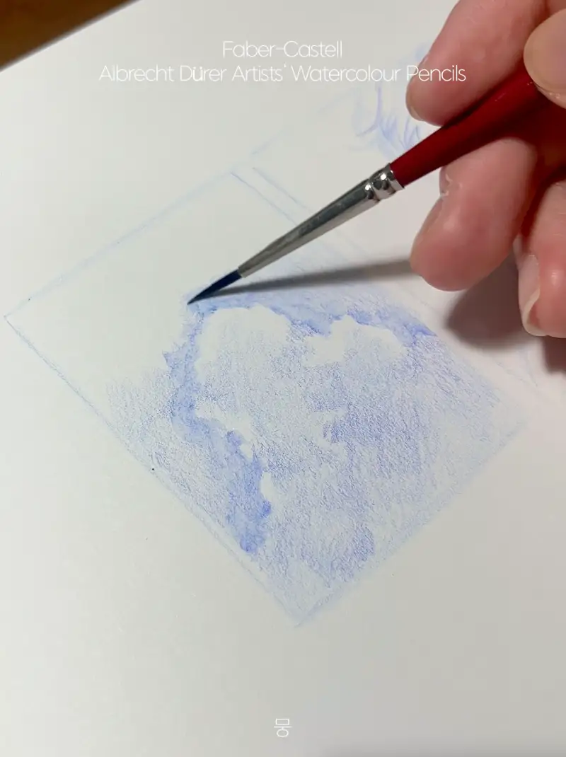 저는 특히 구름의 바깥 부분을 자연스럽게 풀어 줄 때 색연필로 칠한 부분을 붓으로 녹여 보았답니다.