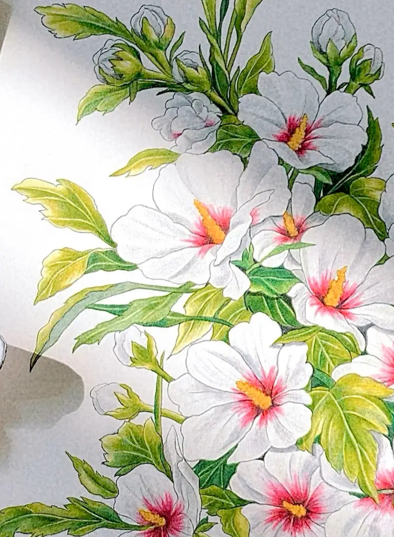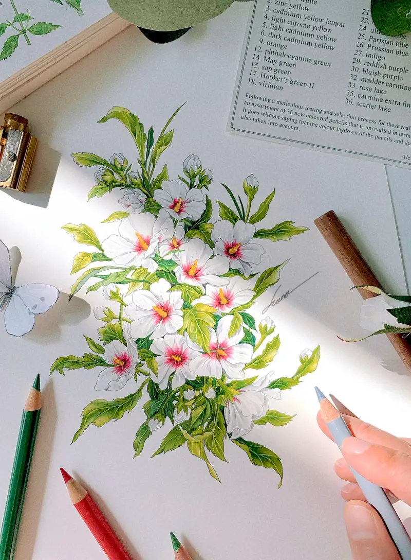 아름다운 우리나라 국화인 무궁화를 그려보았는데요. 화사함과 차분함을 담아내기에 적합한 컬러들이 딱 맞춰 들어있어서 편하게 작업할 수 있었습니다.