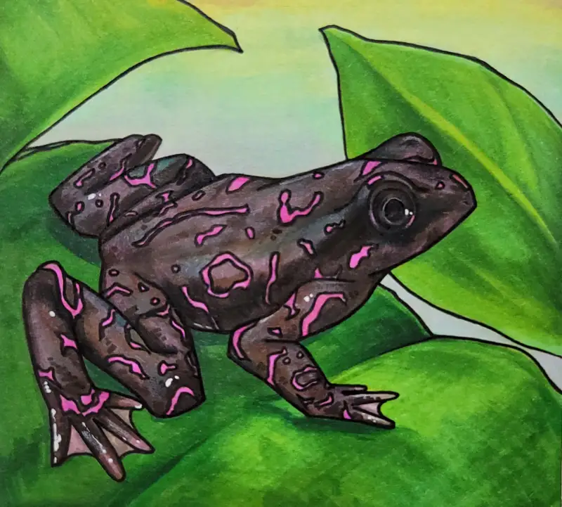 안녕하세요 marvelucat입니다. 일상생활과 그림에 대한 슬럼프에 이리저리 치이다 보니 화방넷 활동에 소홀해 진 것 같아 죄송합니다ㅠㅠ 요즘은 잉크토버 라고 해서 10월 한달간 주제에 맞게 그림을 그리는 챌린지도 틈틈이 하고 있습니다. 그때 그린 그림으로, 퍼플 할리퀸 토드라는 두꺼비를 그려보았습니다. 자주빛이 도는 무늬와 초콜릿색 몸 색깔이 매력적인 친구들 이에요.