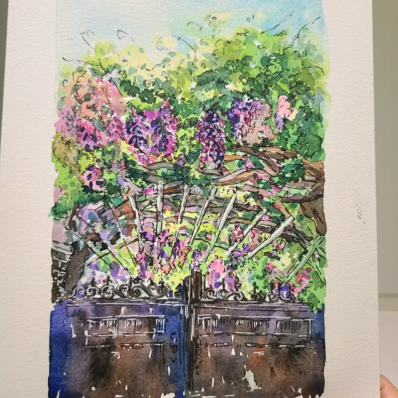 푸릇푸릇 싱그러운 등나무잎과 꽃을 어반스케치로 그려보았어요.