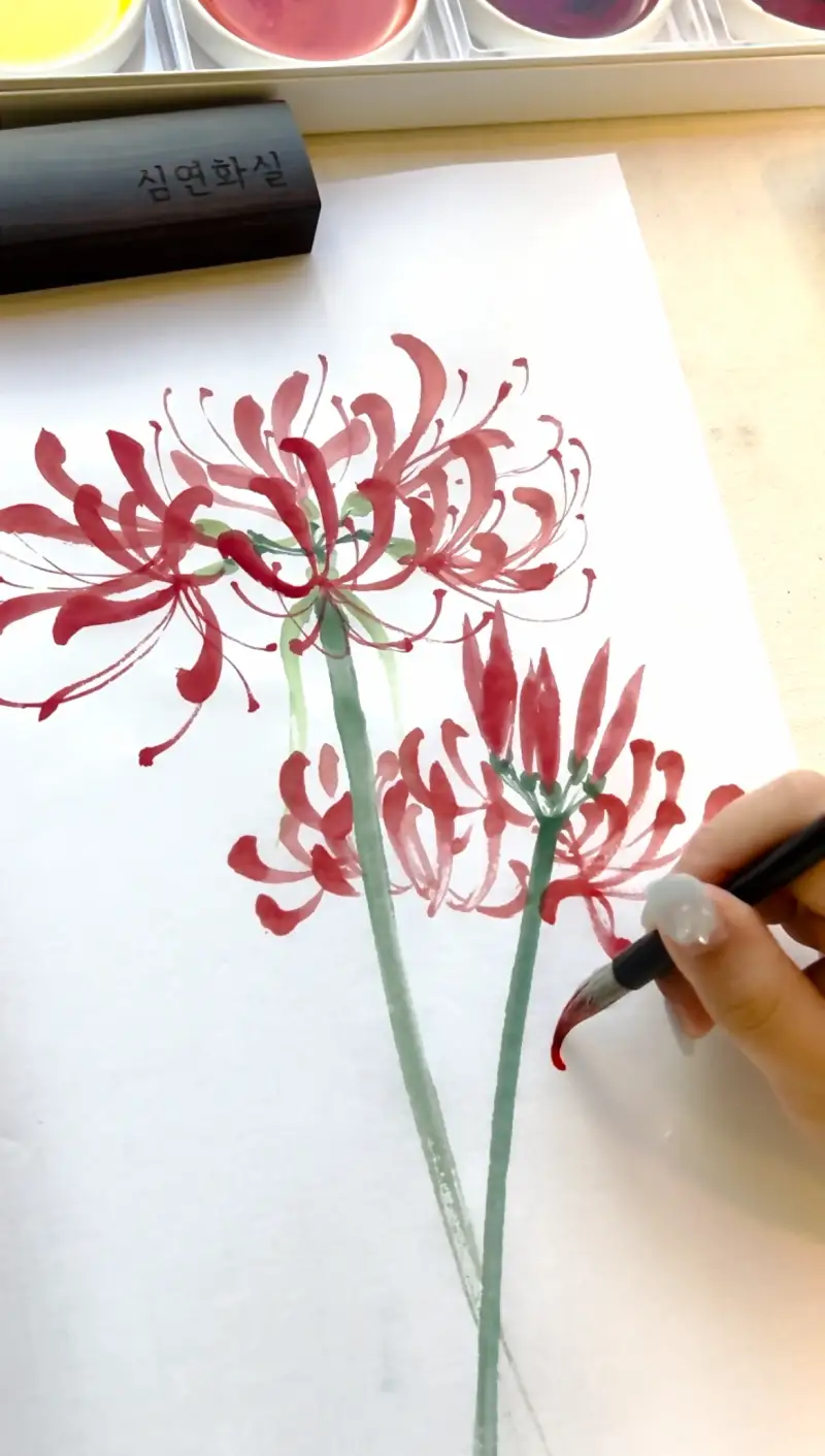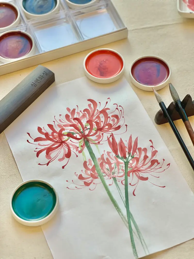 원래도 동양화 물감은 물에 잘 녹는 재형이긴 합니다.