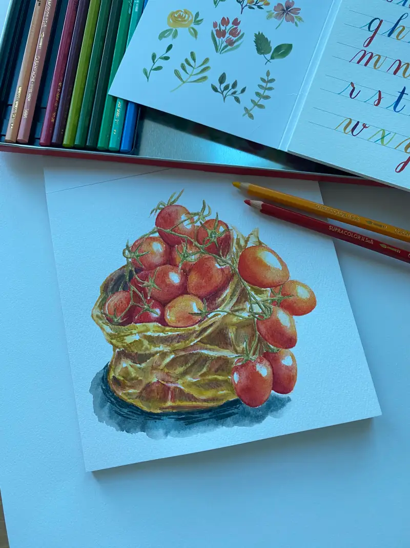 오랜만에 그림을 못 그렸더니 이번 기회에 까렌다쉬 스페셜 보타니컬세트로 토마토를 그려보았습니다