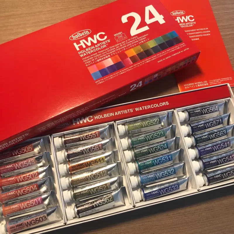 이번 화방넷 체험단 리뷰 물품은 <홀베인 그래뉼레이션물감> 입니다! 수채화 물감 하면 빠지지 않는 브랜드인 홀베인에서 출시된 투톤 물감이에요. 홀베인 특유의 높은 채도와 부드러운 색 분리 현상이 나타나는 특징을 가지고 있답니다.