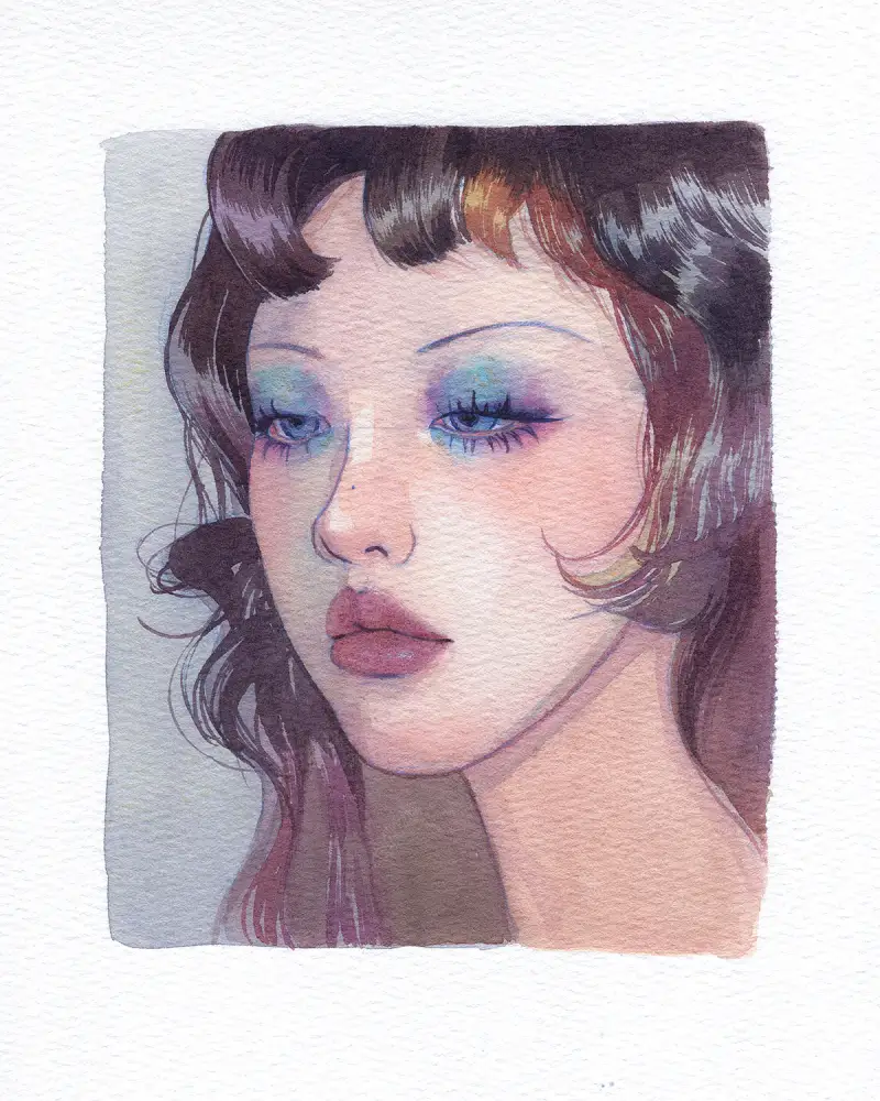 두 가지 종류의 종이에 각각 인물화를 그려봤어요. 오직 그래뉼레이션 물감 24색만을 사용해서 작업했습니다.