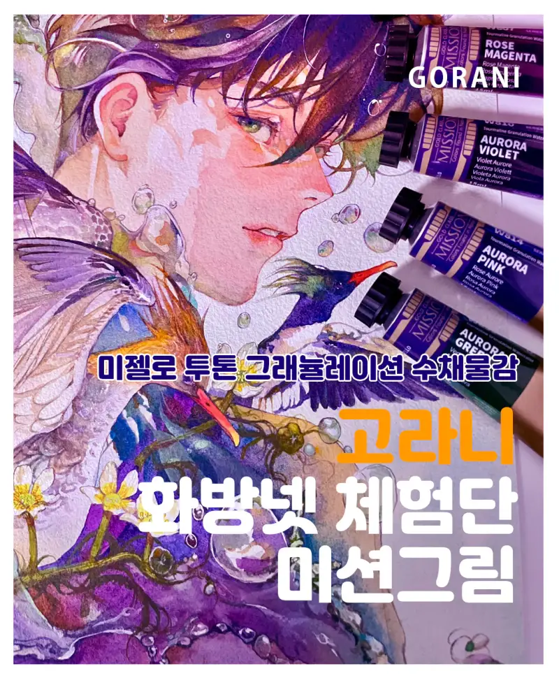 이번 개인작 그림은 미젤로투톤그래뉼레이션 수채물감 5색(봄세트) 체험단으로 그려봤습니다.