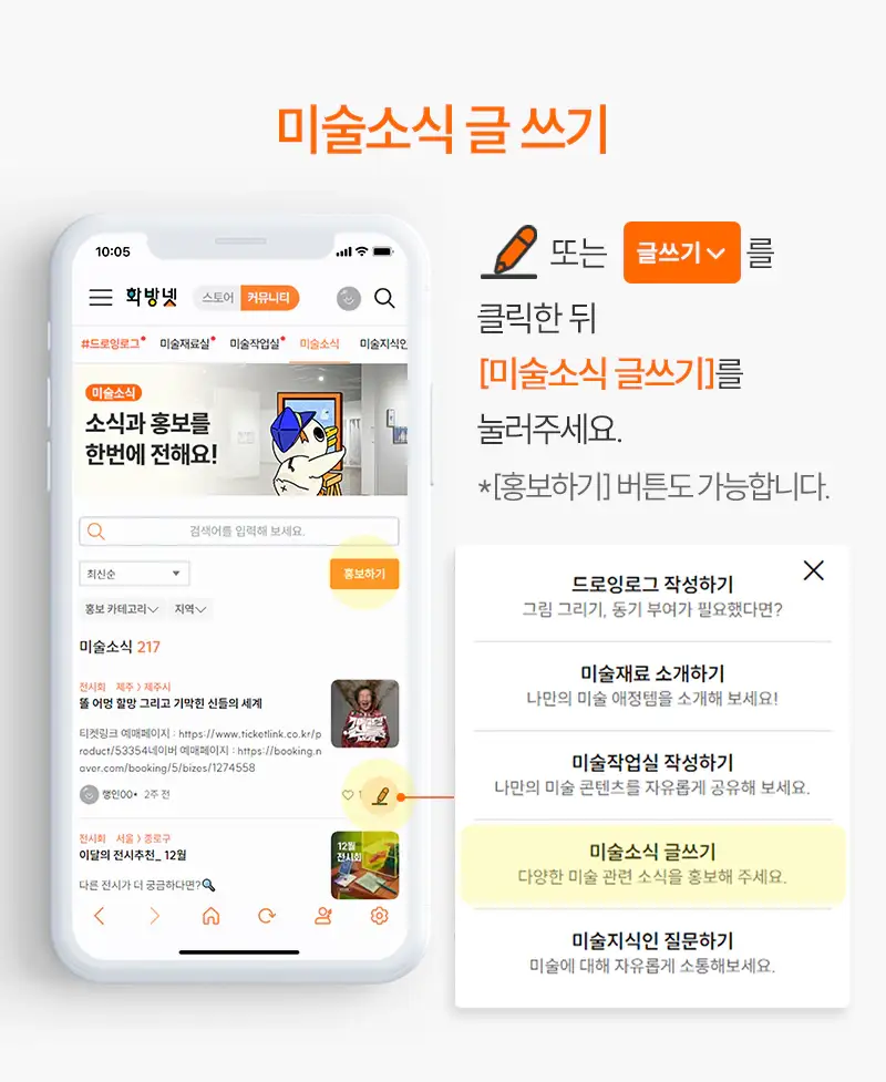 화방넷 커뮤니티 -미술소식 글쓰기-