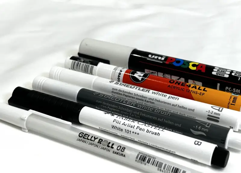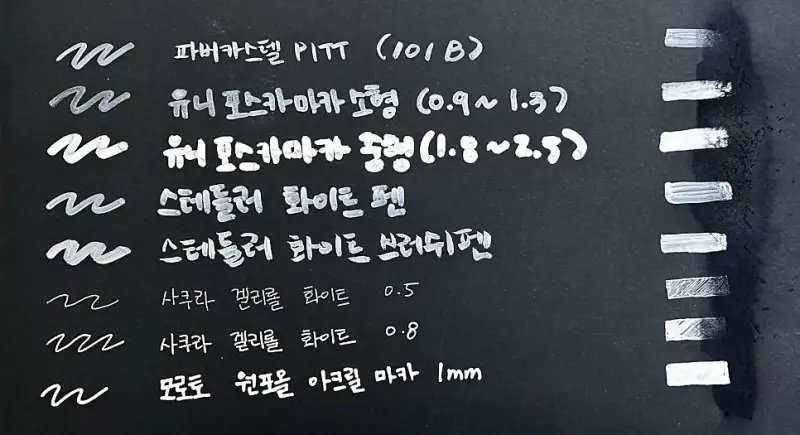 1~2mm, 1~6mm 선폭의 화이트 펜으로