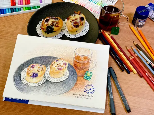 스테들러 소프트 유성색연필로 맛나게 간식 그리기~