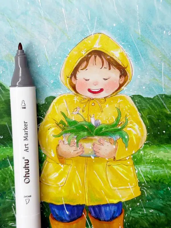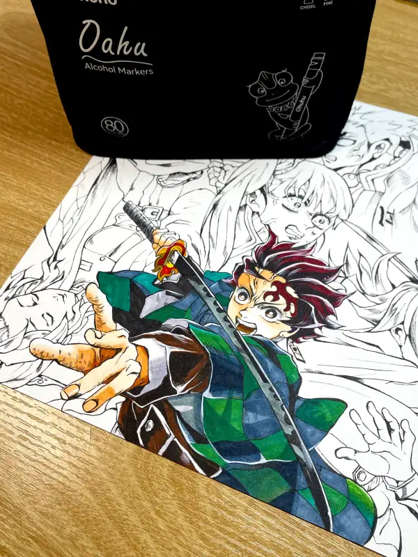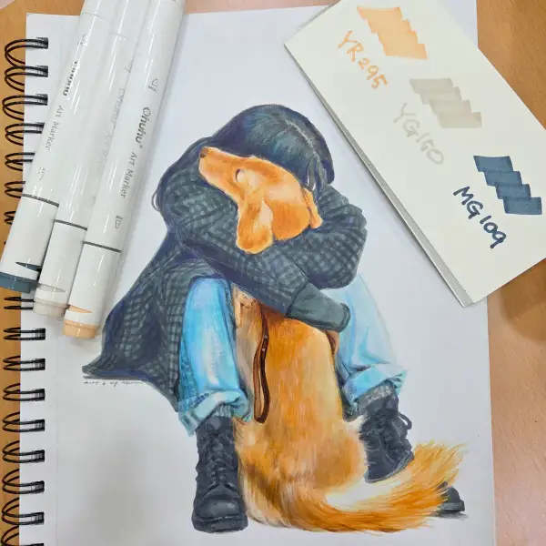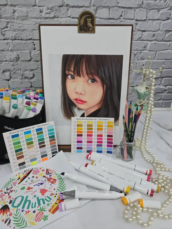 오아후 오후후 마커세트를 베이스로 이용한 색연필 인물화