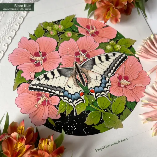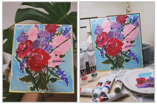한국화 서화판(시키시)에 알파포스터물감으로 그린 꽃그림
