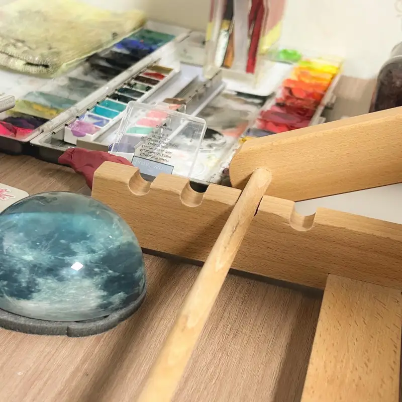 크기가 너무 작지도 크지도 않아 야외 드로잉을 할 때도 용이합니다! 접어서 보관할 수 있어 자리 차지도 적어요. 앞으로도 그림 그릴 때는 늘 이 친구와 함께하게 될 것 같네요. 실제로 처음 책상에 펼쳐두고 한번도 접지 않고 매일 이젤 앞에서 그림을 그리고 있답니다… 🫠