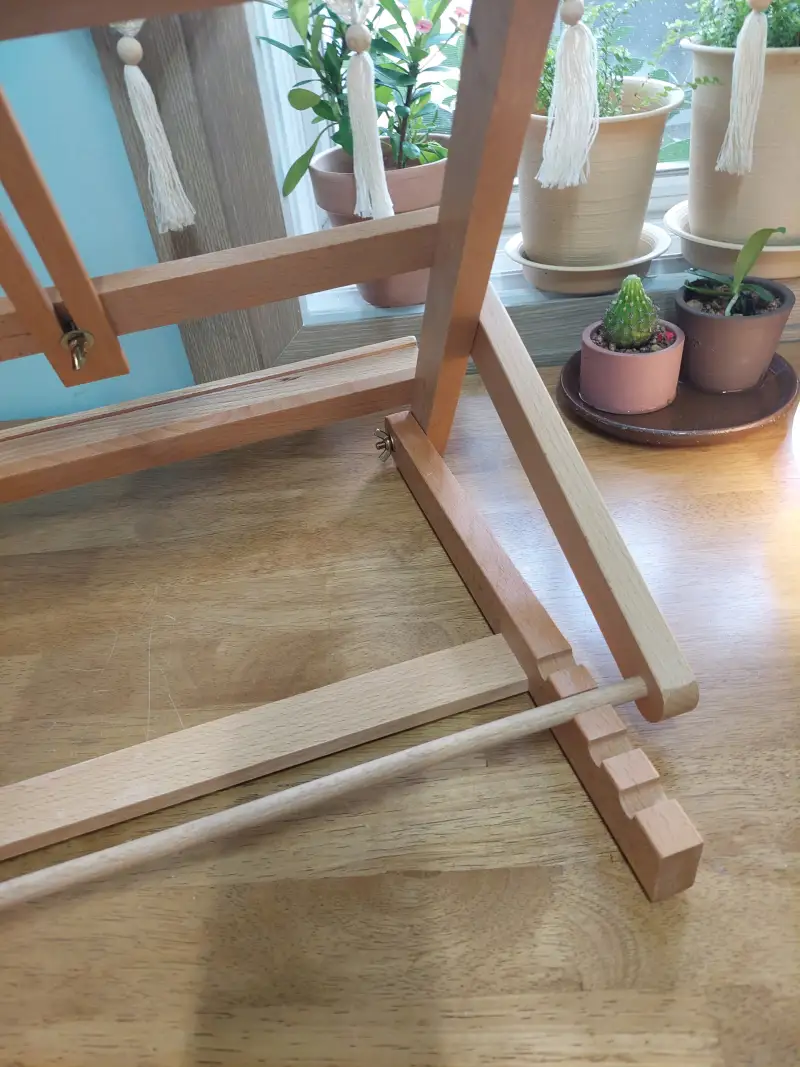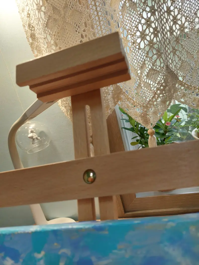 이젤 뒷면에 높낮이 조절이 가능해서 그림사이즈에 맞게 조절이 가능합니다. 뒤에 나사 두개로 가능하답니다.