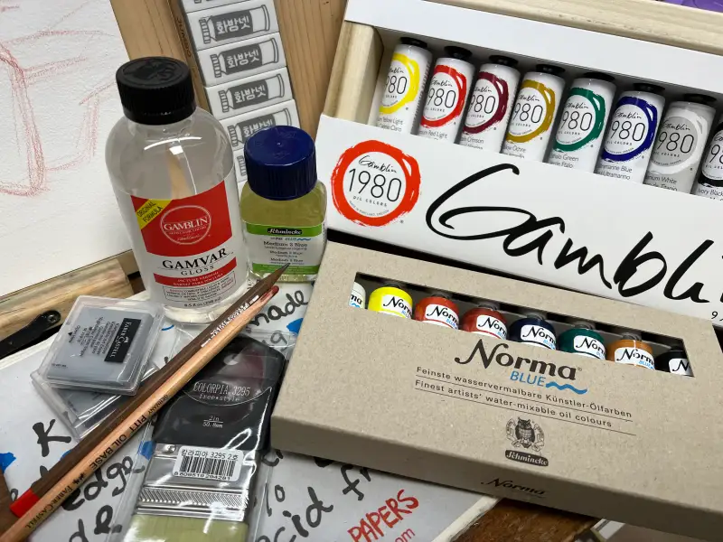 유화 물감은 갬블린1980 8색을 주로 사용했고