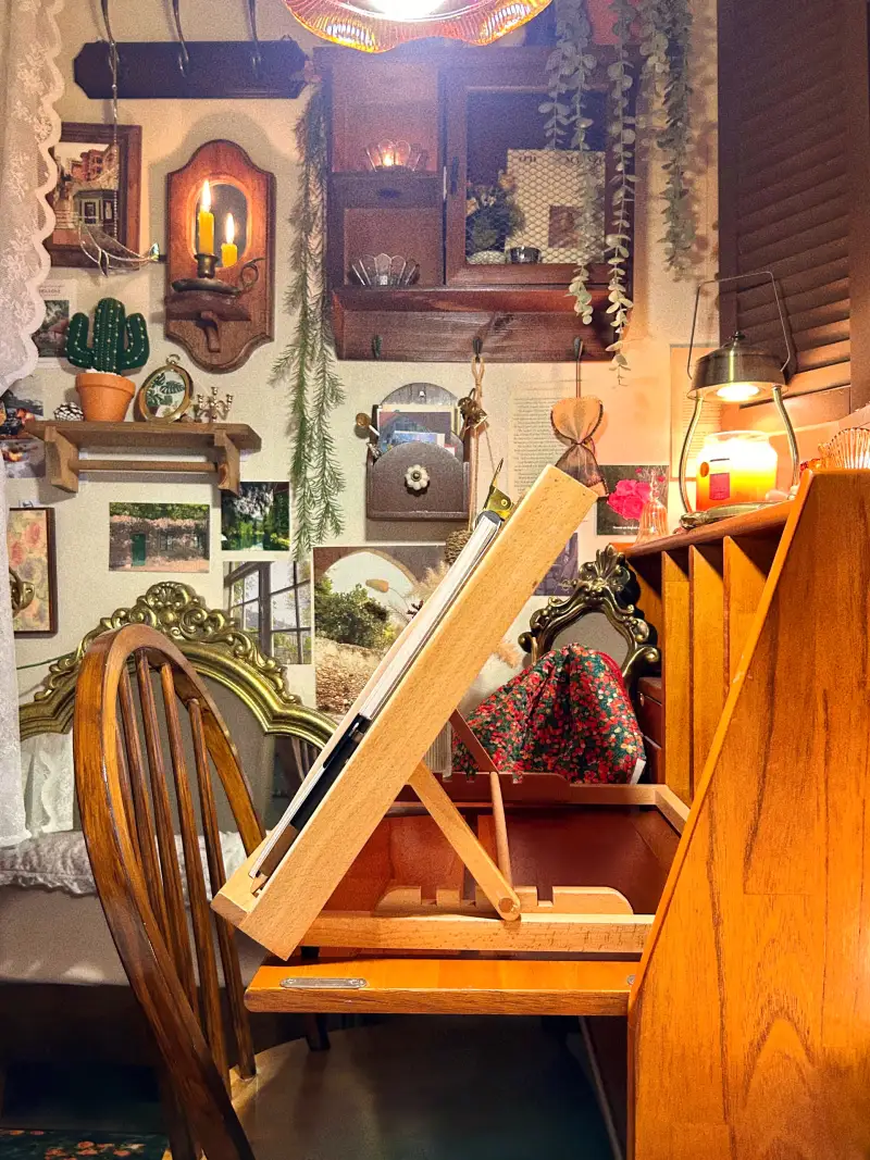 드로잉뿐만 아니라 독서, 필기 등 다양한 용도로 사용이 가능한 일체형 테이블 이젤인데 크기도 적당한 A3 사이즈에 판넬이 이젤에 고정되어 있어 작업 시 흔들림 없이 안정적으로 사용 가능하답니다🫢👍🏻