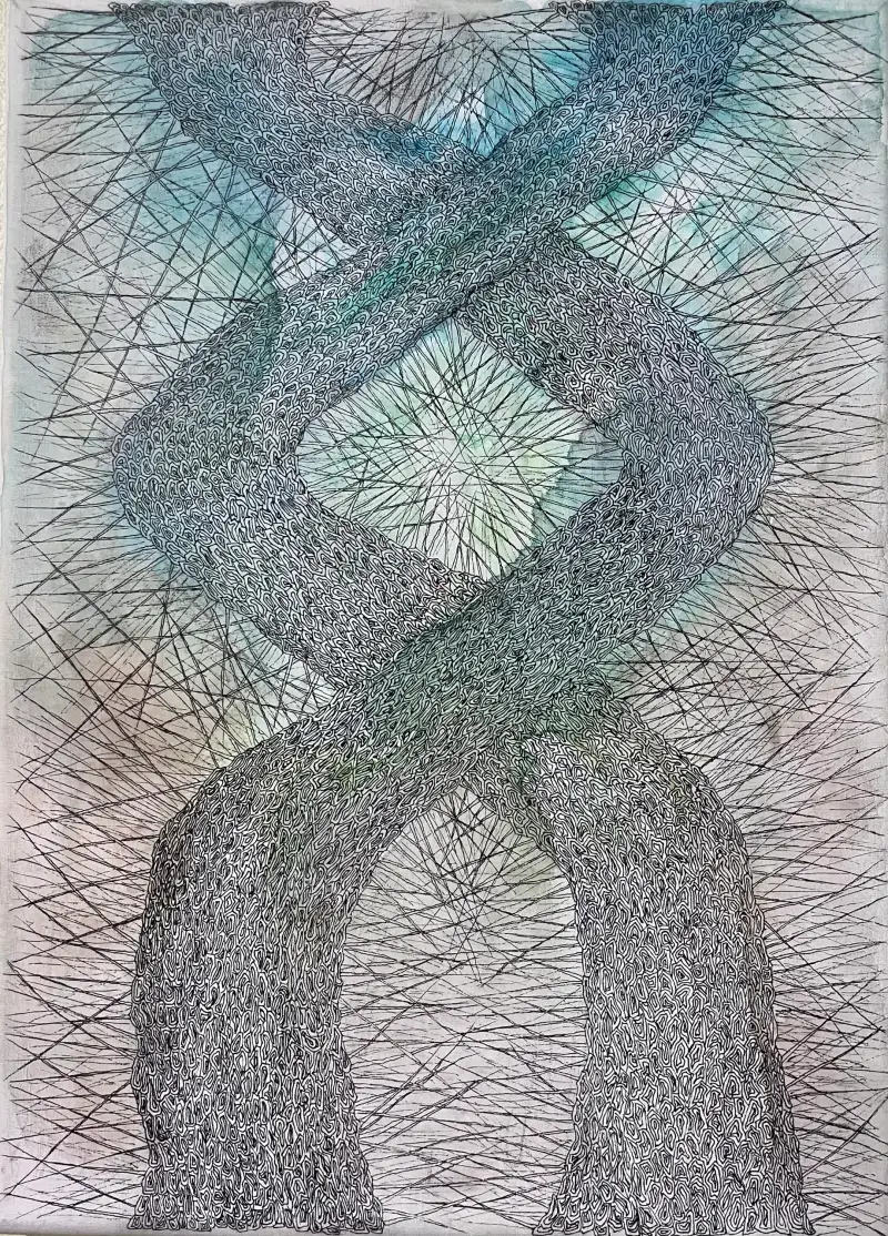 인간의 간사함을 표현하고싶었어요. 가장 친하다고 생각하는 사람, 하나가 된 것만큼 가까웠던 사람이 한명쯤은 다들 있을거라고 생각해요. 그들을 누구보다 믿었지만 결국은 어떠한이유로 뒤통수치고 멀어져가는, 자신의 이익을 위해 가까운 존재를 잃어도 된다는 그런 인간의 간사함을, 하나처럼 이어진것처럼 보이는 나무 기둥이 결국은 하나가 아니라 두개의 기둥이였고 서로를 언젠가는 찌를수있는 가시돋은 존재라는것을 표현해 봤어요.